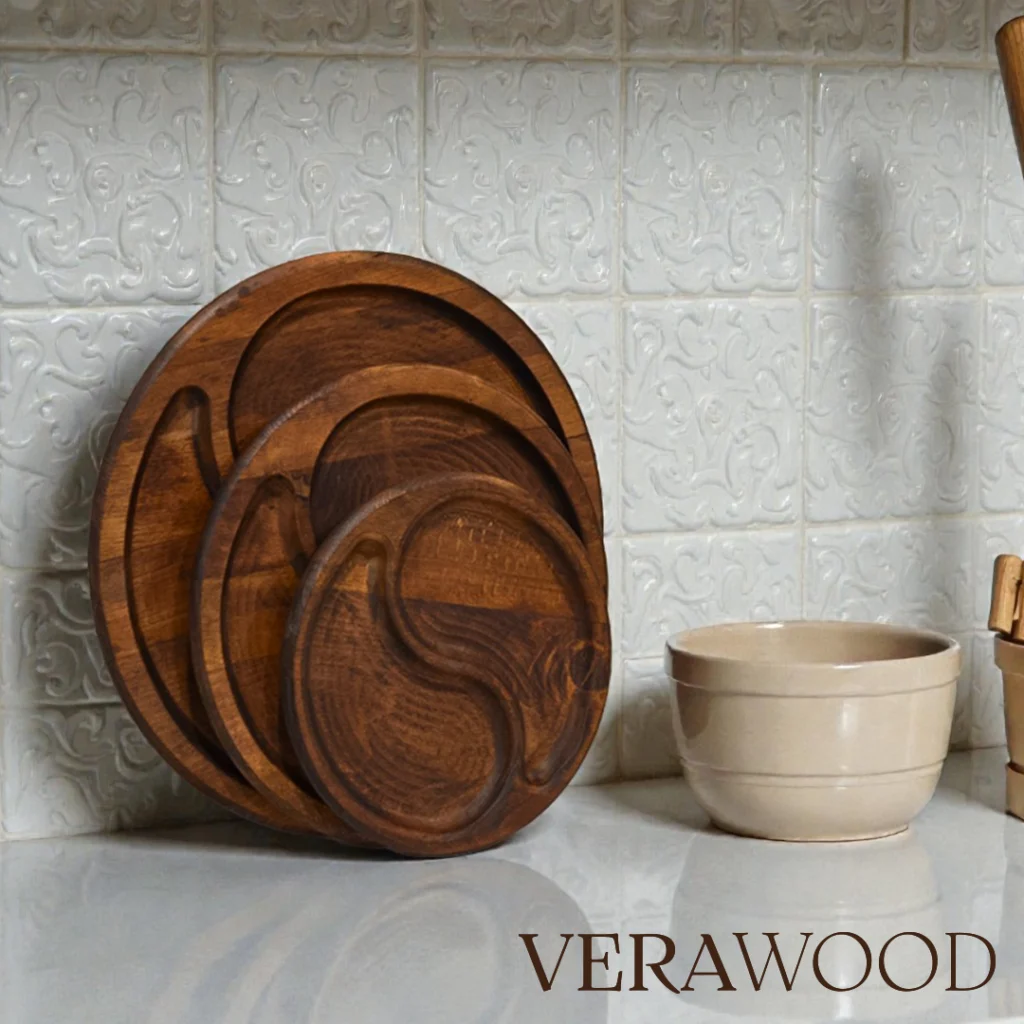 Yuvarlak Büyük Boy Ahşap Sunum Tabağı